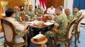 Roso Daras saat memotong tumpeng, dan menyerahkannya kepada Meiniwan.