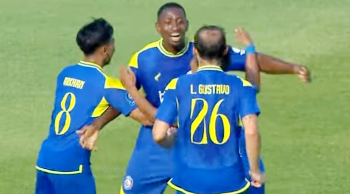 .Gol cepat M. Pisau disambut riang oleh Ahmad Ferari. Namun sayang Arema kalah 1-2 di akhir babak. .Foto Kusnin tangkapan layar TV.