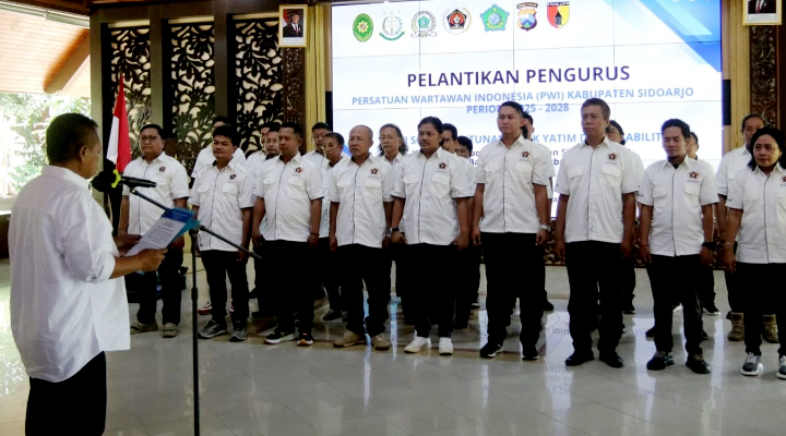 COWASJP.COM – Pengurus Persatuan Wartawan Indonesia (PWI) Kabupaten Sidoarjo periode 2025–2028 resmi dilantik di Pendopo Delta Wibawa, Senin (20/10/2025).