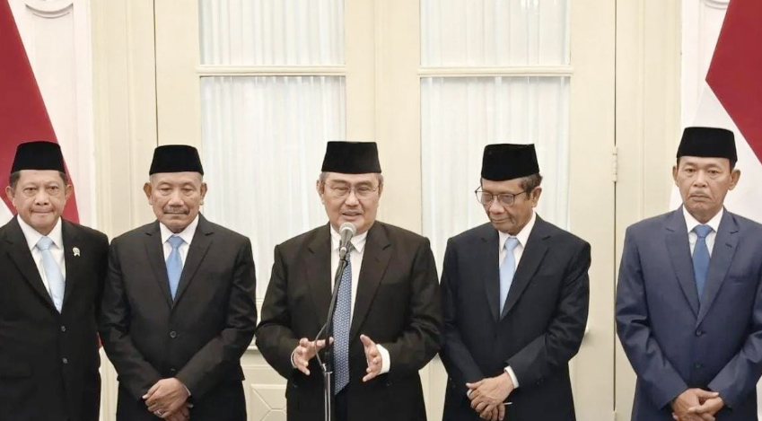 Menteri Dalam Negeri sekaligus Kapolri periode 2016–2019 Jenderal Pol. (Purn.) Tito Karnavian; Menteri Hukum Supratman Andi Agtas; Menteri Koordinator Bidang Politik, Hukum dan Keamanan periode 2019–2024 sekaligus Ketua Mahkamah Konstitusi periode 2008–2013 Mahfud MD.