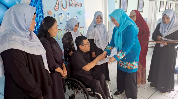 Acara kali ini diperingati dengan sangat sederhana di pelataran kantor yayasan dan SLB. Sebab, aula yang biasa untuk berbagai kegiatan, plafonnya ambruk akibat hujan dan angin beberapa waktu lalu.