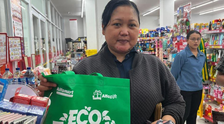 Sebagai bentuk dukungan, sedikitnya 20 Alfamart di Kota Mojokerto membagikan ribuan tas belanja go green atau ramah lingkungan gratis untuk para konsumen yang berbelanja. Selama tiga hari, yakni Jumat (3/10) sampai Minggu (5/10/2025).