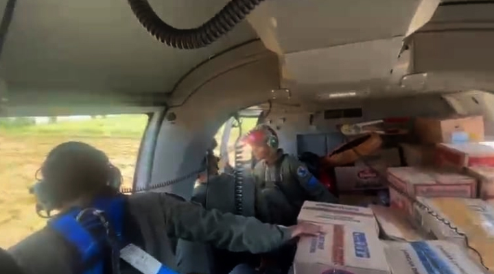 Sesuai kemampuan helikopter, mereka membawa bahan pokok 400 kilogram. Untuk masyarakat desa yang terkena banjir bandang. Dan tidak bisa dilalui melalui darat.