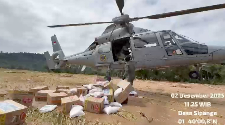 Bantuan logistik melalui udara itu, dikirim ke empat desa. Yaitu Desa Sipange, Desa Kalangan, Desa Tukka dan Desa Puncak GM, di Tapanuli Tengah.