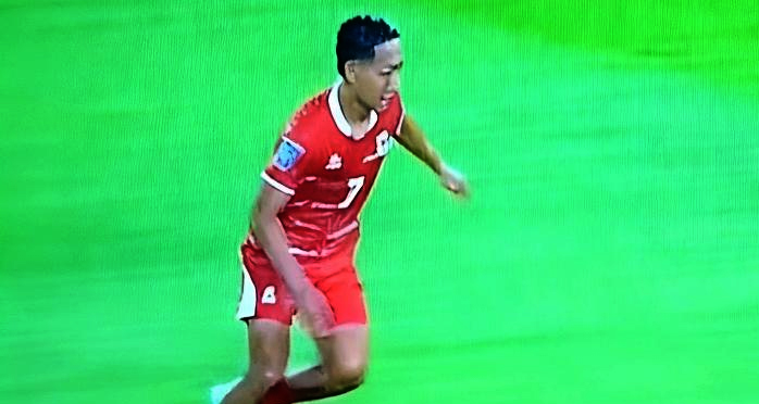 Beckham Putra yang mencetak dua gol ke gawang Saint Kitts and Nevis. (FOTO: Kusnin - Tayangan Layar SCTV)